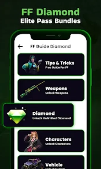 واحدة من الميزات المميزة لـ Get Daily Diamonds FFF Tips هي Diamond Royale، وهي لعبة محاكاة أفضل حالة. يتميز التطبيق أيضًا بواجهة سهلة الاستخدام، مما يجعله متاحًا للمستخدمين من جميع الأعمار. بالإضافة إلى ذلك، يمكنك الاستمتاع بالرموز التعبيرية والجلود والحزم داخل اللعبة.
